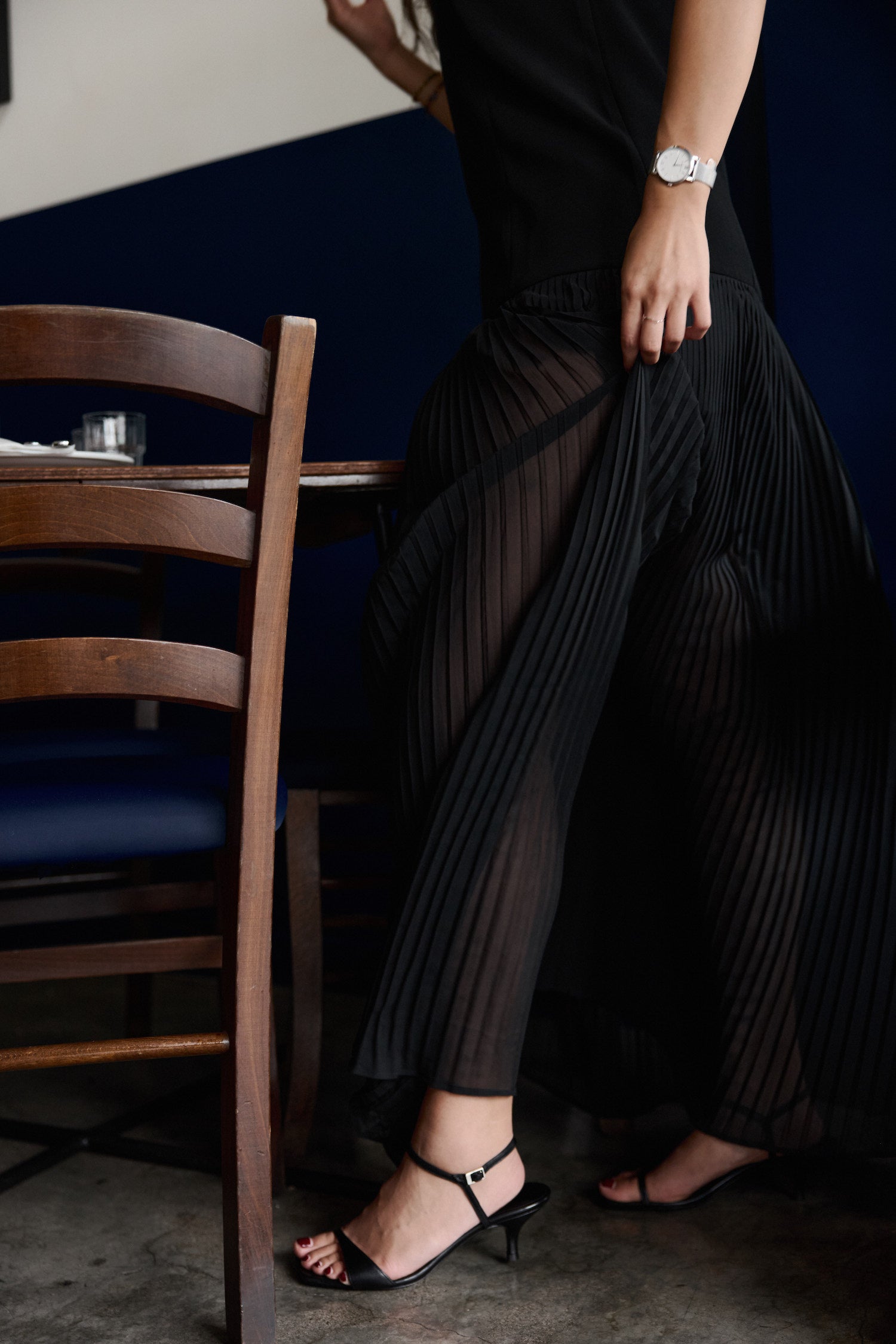 Tiffany wears the Bella Dress & Elle Heel